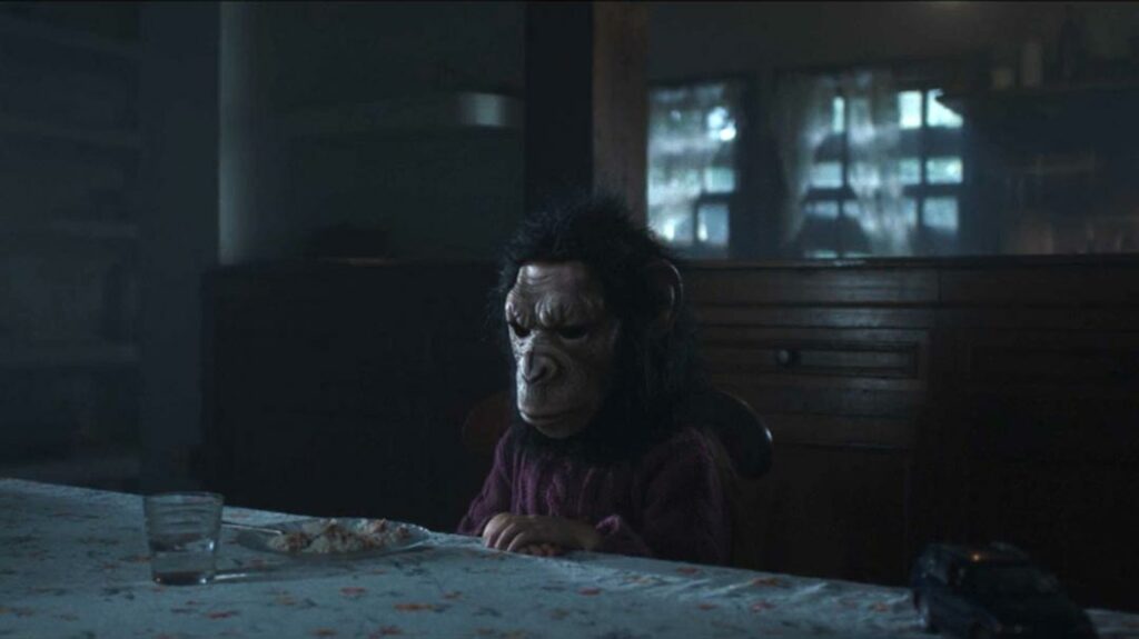 Sabes que un director tiene una fuerte voz propia cuando logra que su historia se perciba como un reflejo colectivo. Christopher Cartagena construye, mediante una increíblemente potente dirección, un relato donde los aspectos domésticos, psicológicos y sociales más cotidianos de una familia disfuncional se entrelazan de la forma más macabra posible hasta convertirse en un único estado emocional: la disforia. Esa sensación de sentirte fuera de lugar, sin poder controlar tus propios pensamientos y acciones, y molesto por el comportamiento de las personas más cercanas en tu entorno, como si fueses un animal que únicamente sigue sus instintos de supervivencia y deja que estos interfieran en su afinidad, como un simio. Se recuerda entonces que todo mito contemporáneo nace de miedos muy reales, por muy fantásticos que parezcan. El miedo a la violencia, a la mirada ajena de las personas en las que más confías, a ser sustituido como si nunca hubieses existido y a que, sin saberlo, todo tu trabajo y legado desaparezca, son más que reales. El miedo no siempre se basa en un cuchillo o un aterrador monstruo; a veces también viene de los pensamientos más intrusivos del ser humano, y Disforia sabe cómo utilizar esto a su favor.