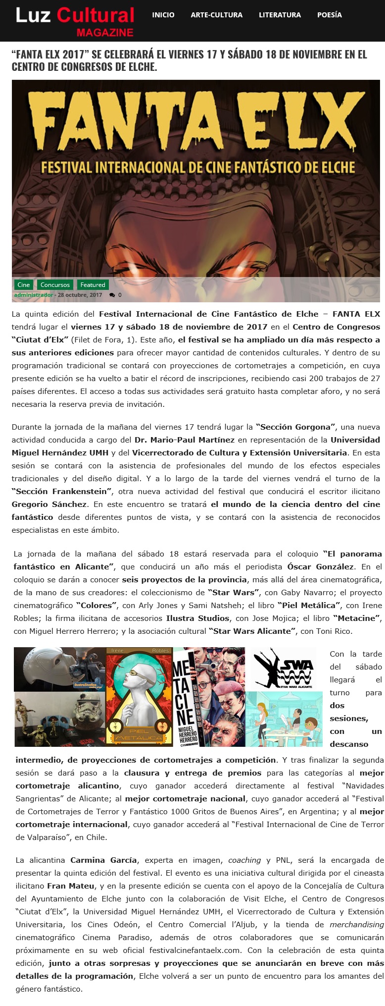 ELCHE SE CONVIERTE EN REFERENTE DEL CINE FANTÁSTICO CON FANTAELX